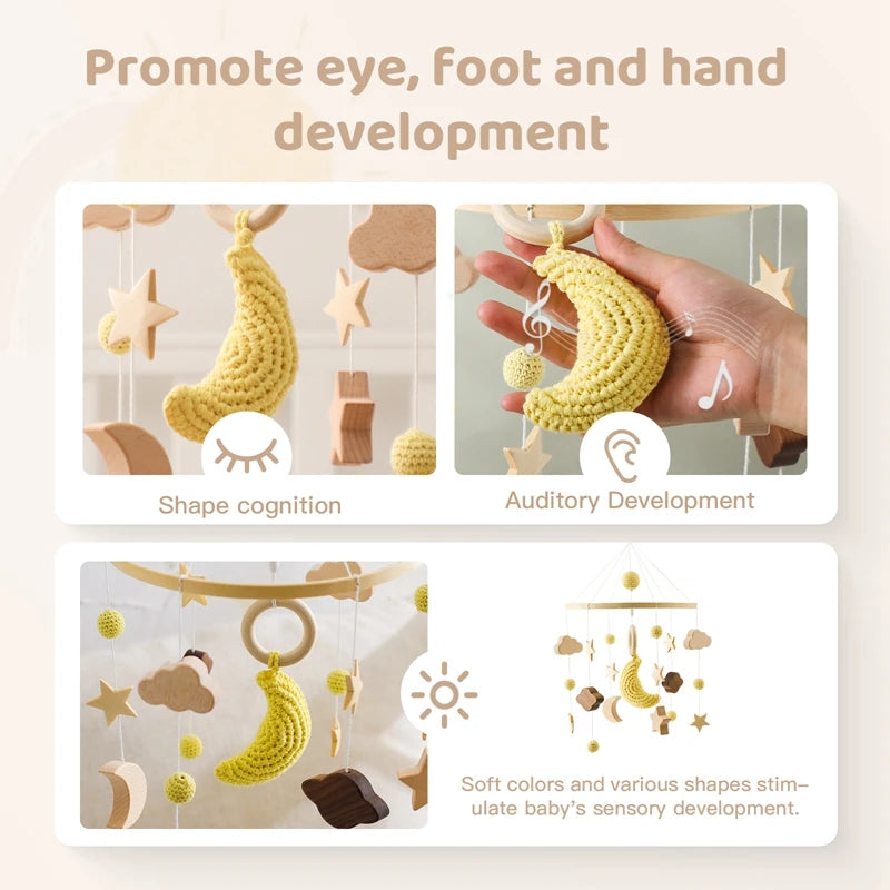 Baby Crib Mobile Wooden Bed Bell Rattle Toy Soft Felt Hot Air Balloon Wind Chime Pendant Newborn Comfort Bed Bell Toys Baby Gift