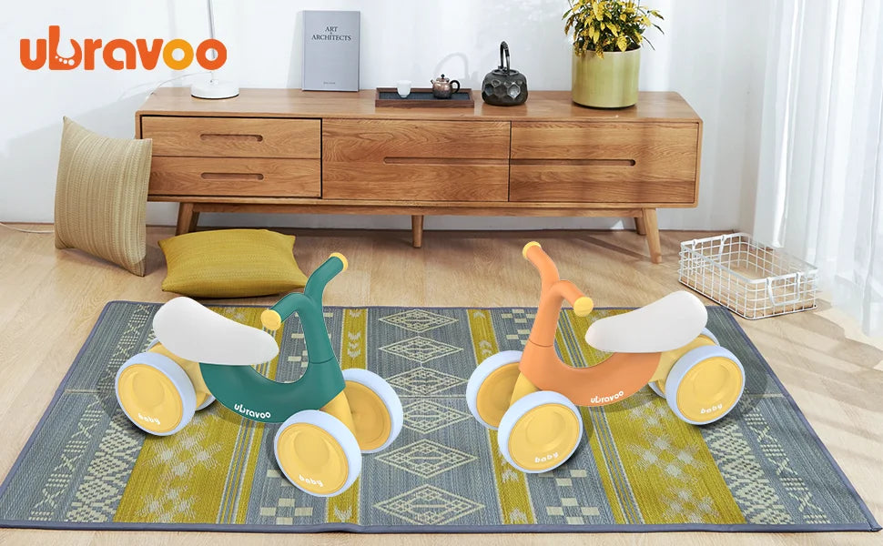 UBRAVOO kids' balance bikes designed for 10-36 months boys and girls baby.The balance bike help toddlers grow physical strength for balance control, steering, coordination and strength on their legs. Playing with parents could be made babies more confident and happier via encouragement.